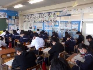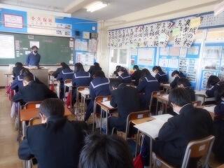 今日と明日の2日間、1・2年生3学期期末テストが行われます。1年生7教科、2年生8教科の試験が実施される予定です。今年度最後の定期テストになります。最後まであきらめずに頑張ってください。