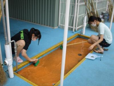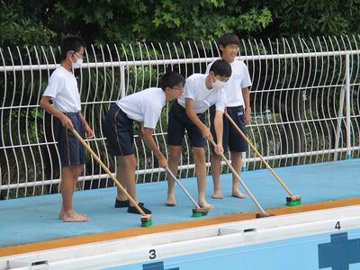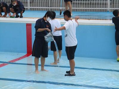 理科の授業では、ガスバーナーの取扱テスト、体育の授業では、プール清掃を行っていました。早くプールに入りたいという声がたくさん聞こえてきました。