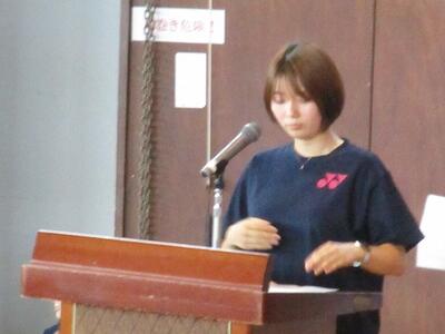 生徒が司会進行を務め、各クラスの代表者による作文発表や修学旅行、進路についての説明がありました。