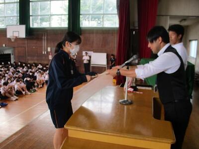 個人表彰、団体表彰とありましたが、生徒達は堂々とした大きな声で返事をしていました。