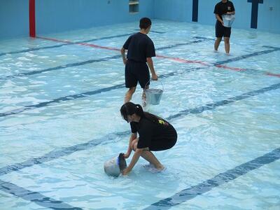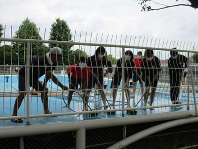 理科の授業では、ガスバーナーの取扱テスト、体育の授業では、プール清掃を行っていました。早くプールに入りたいという声がたくさん聞こえてきました。