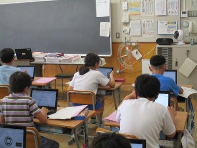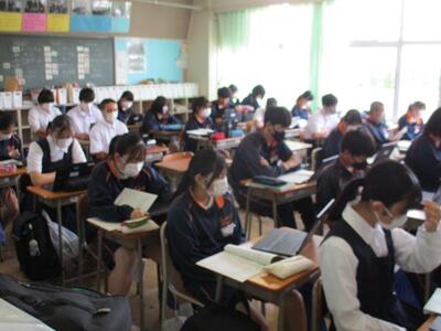 熱中症対策の観点から、体育館で対面式とはせずに、コンピュータ室を本部とし、オンラインで行いました。