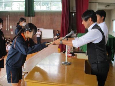 個人表彰、団体表彰とありましたが、生徒達は堂々とした大きな声で返事をしていました。