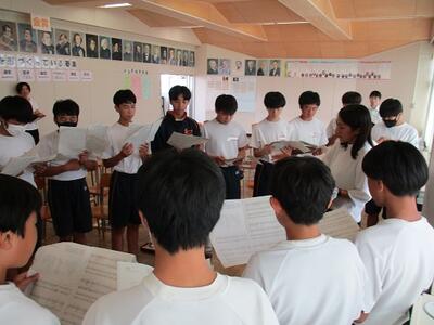本校は、事前に7ヶ国32の学校の星友が作った上の句に下の句をつけます。