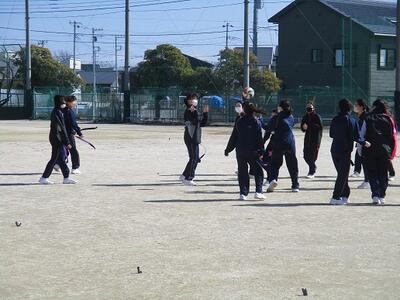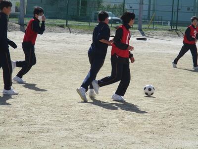 1年生は球技会を行いました。強風や寒さにも負けず、校庭や体育館を元気に走り回っていました。