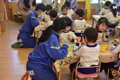 保育実習の2日目。写真で見ると、本当にほほえましい光景です。誰もが思わず笑顔になれます。
