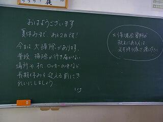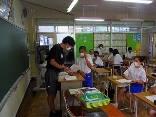 終業式の後は、各教室で最後の学活がありました。夏休みに向けてのプリントなど配付物もたくさんありましたが、最後は一人一人に「通知表」が手渡されました。