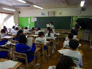 この1学期末に「2年生の理科の授業」を指導してくれた校長先生に、2年生からお礼のメッセージを、各教室からリモートでおくりました。休み時間中だったけどみんなでつくる温かい時間でした。