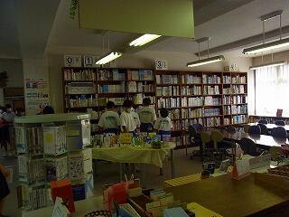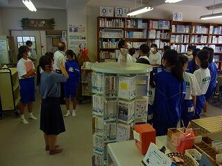 1年生国語の授業です。今日は学校図書館で情報を集める方法を学習しています。図書の分類のしかたなどを学んだ後、実際に図書選びをしました。