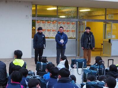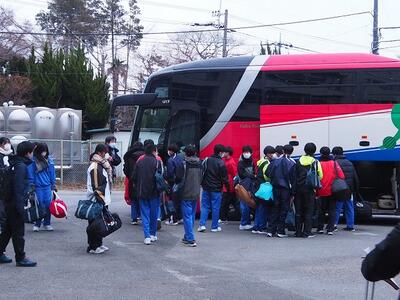 出発式の様子やバスへの乗車の様子をご覧ください。