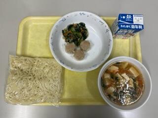 1月17日(火)の給食は、豆腐ラーメン、牛乳、蒸しシュウマイ、華風あえでした。