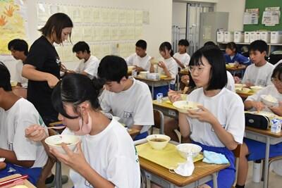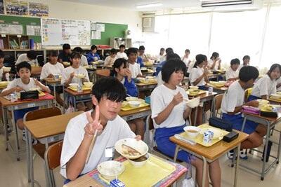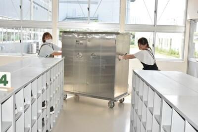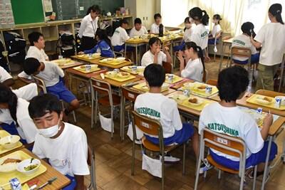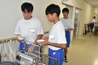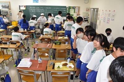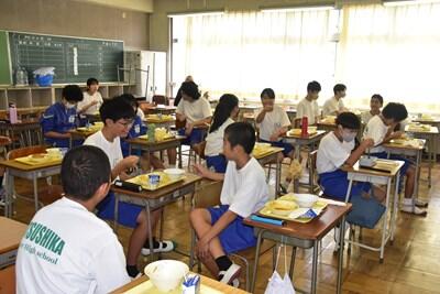 今日から2学期の給食が始まりました。新しい校舎では給食の準備、片付けの勝手が変わり、多少混乱気味な様子も見られましたが、無事に2学期初日の給食をおいしくいただくことができました。