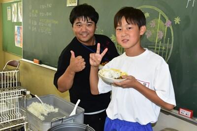 今日の献立は、春日部市が、包括的連携協定を締結している、プロ野球「西武ライオンズ」とコラボした若獅子カレーです。豚肉と玉ねぎがごろっと入っていて、ルウもいつものカレーと違います。