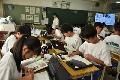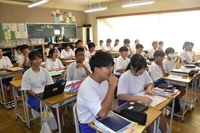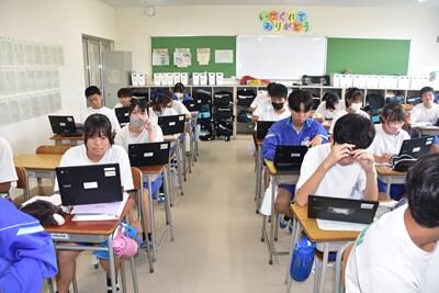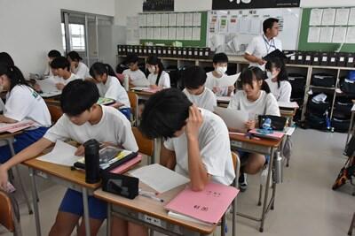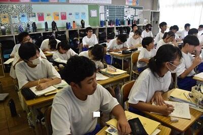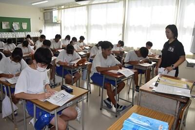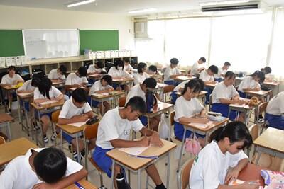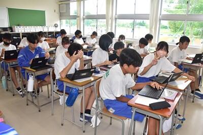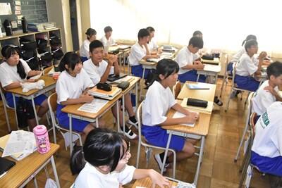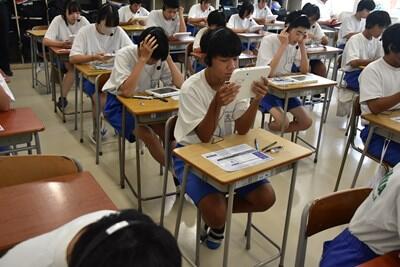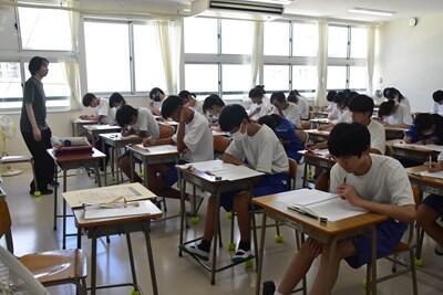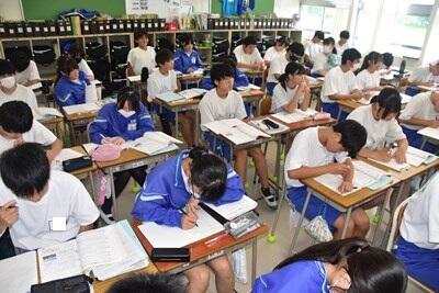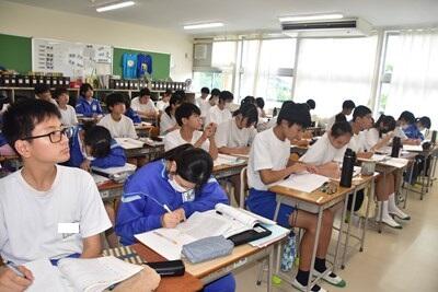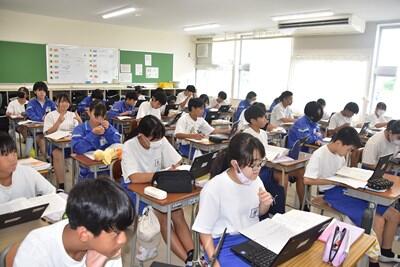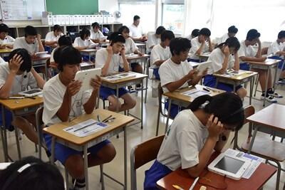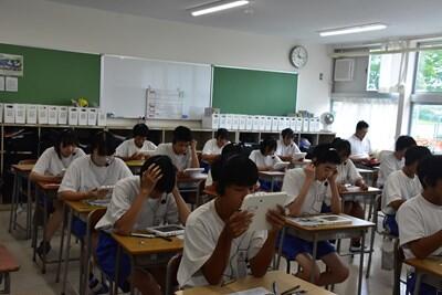 2学期に入りはじめての学校運営協議会が開催されました。委員の皆様にはご多用中、また、猛暑の中をご来校いただきまことにありがとうございました。葛飾中学校の教育活動、リノベーション工事についてなどをご説明し、学校の様子、生徒の様子などをご覧いただいたのち、各委員の皆様からご意見をいただきました。今日は、2年生は「GTEC」、3年生は第2回東部地区学力検査を行いました。GTECは、「聞く」「話す」「読む」「書く」の4技能の英語力を測定するテストで、使える英語力を絶対評価で測定する、スコア型の検定です。今は、様々な検定等は、端末を用いて実施することがほとんどです。「話す」項目については、端末に向かって個々が回答に相当する言葉を語りかけることとなります。中学生の早い段階からこうしたことに慣れること、客観的な評価を得ることはとても大切なことです。