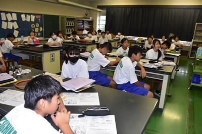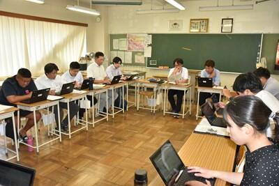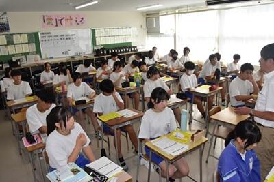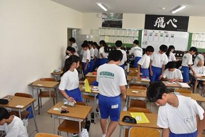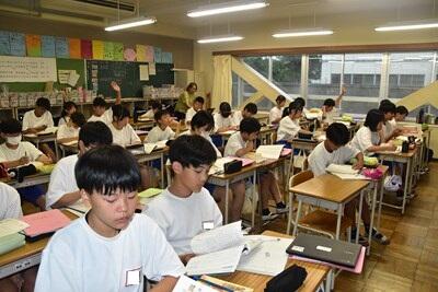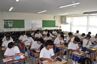 相変わらず暑すぎる日が続いています。8月第5週、金曜日からはいよいよ2学期が始まります。今日は午前中に研修会(先生方の勉強会!)、その後、先生方で主に2・3年生が仮設校舎で新学期を迎えるための準備を行いました。