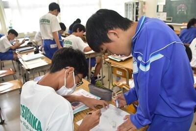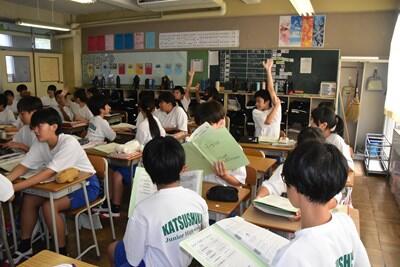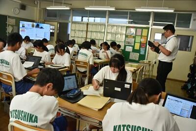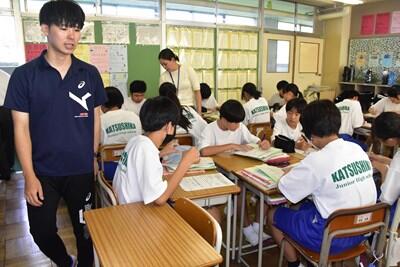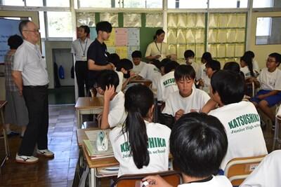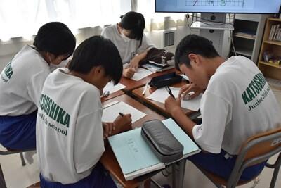 今日は埼玉県東部教育事務所、春日部市教育委員会から指導者の先生に来校いただき、本校の先生方の授業と、生徒たちの様子をご覧いただき、授業等について指導助言をいただきました。指導者の先生方からは真剣に授業に臨む生徒や葛飾中学校の教育活動についてお褒めの言葉をいただきました。