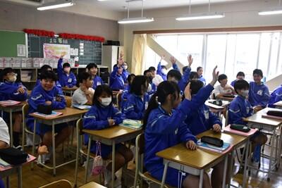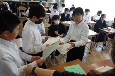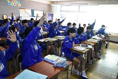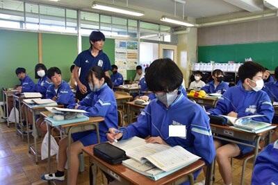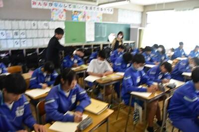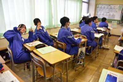 5月になりました!学校歯科医の先生に来校いただき、1・2年生の歯科検診が行われました。1年生ははじめての「大縄跳び」に挑戦しました。1回飛ぶことの大変さ、1回への高い壁を生徒たちも感じていたのではないでしょうか・・・(授業の終わりころにはなんと、4回跳んだクラスがありました!)