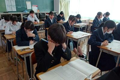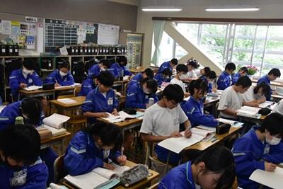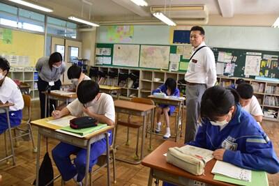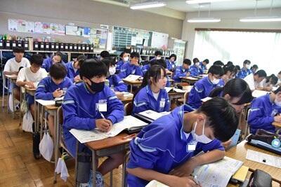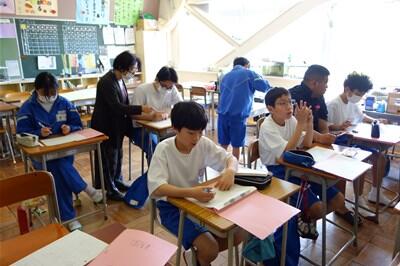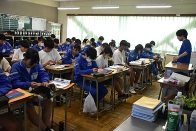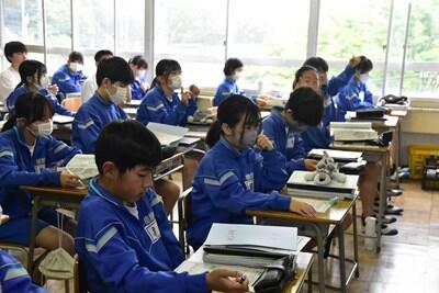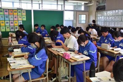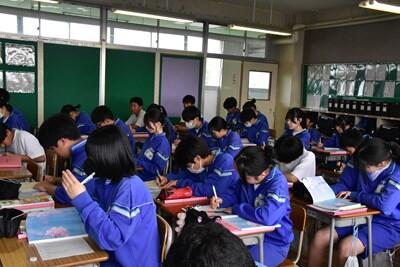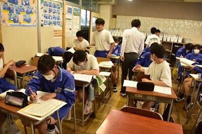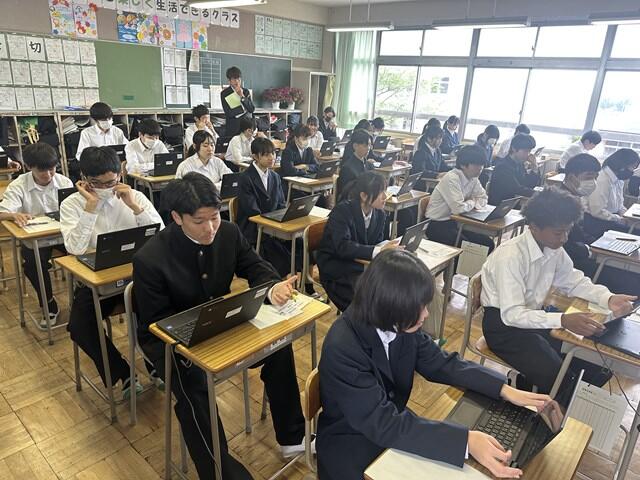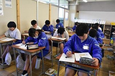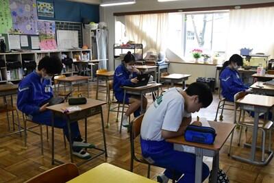 1年生は学力テストを、3年生は全国学力・学習状況調査を行いました。それぞれ集中してテストに向き合っていました。朝の天気予報では、日中かなりの高温が予想されるとのことでしたので、朝から熱中症に対する備えを指示していましたが、実際にはそれほど気温は上がっていません。しかし、この週末には夏日が予想されています。