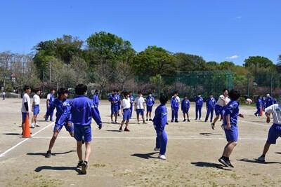 葛飾中学校の昼休み・・・ 昼休みの校庭には、元気よく遊ぶ生徒たち(先生も)の姿がたくさん見られます。いつもの葛飾中学校の風景ではありますが、リノベーション工事の関係で、校庭までの道のりは遠くなっているのですが、こんなにもたくさんの生徒たちが、短い昼休みの時間ではありますが元気よく遊んでいます。生徒も先生も「ウエルビーイング」な学校を目指す葛飾中学校としては、大変喜ばしいことですね。