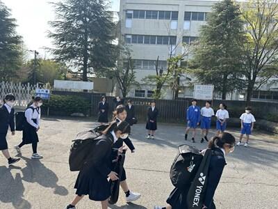 4月第4週がスタートしました。葛飾中学校の朝は賑やかです。それぞれの学年の昇降口では、毎朝、学年の先生方が登校する生徒たちを出迎え、生徒たちも元気のよい挨拶と共に校舎に入ります。横断歩道や校門でも、多くの先生方が生徒たちを明るく出迎えています。昨年度まで、週に2回生徒会本部役員のみなさんが、朝のあいさつ運動を行っていましたが、今年度からはこれに加えて、生活体育委員のみなさんも、週に2回「朝のあいさつ運動」を行ってくれることになりました。朝から、明るい笑顔と元気のよい挨拶で、生き生き充実、生徒も先生もウエルビーイングな葛飾中学校です!