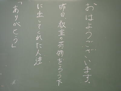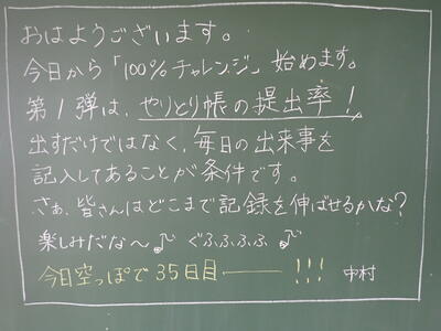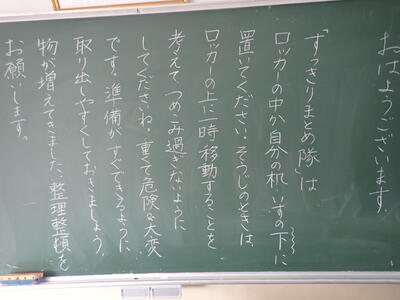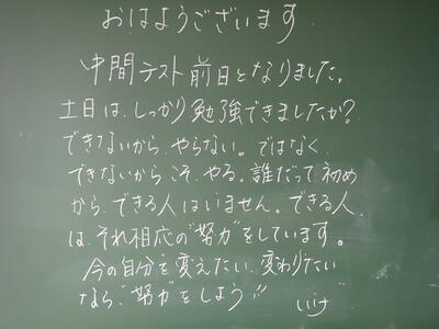 朝、各教室を回っていたら、全てのクラスで体育祭に向けての意気込みが書いてありました。どれだけ熱い思いを持って臨んでいるかがわかります。