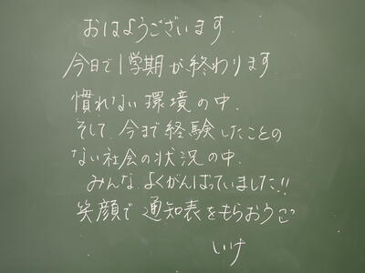 1学期最後の学活です。1学期間本当にご苦労様でした。いつもより短い夏休みだけれども、また2学期元気に会いましょう。