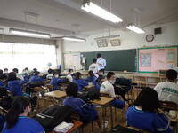 2年生は、5,6時間目にかけて保健学習「生と性」について学びました。外部から助産師の日野先生をお呼びして、実物大の赤ちゃん人形や妊娠検査薬、実際にあった衝撃的な事実や感動の話などを通して、いかに生き抜くことが大切かを熱く語っていただきました。蒸し暑い体育館の中でもだれることなく、生徒たちは食い入るように話を聞いていました。