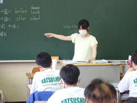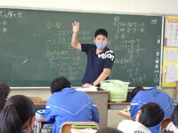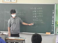 昼休み、ALTのフェルナンド先生(通称ナンド先生)が明日の英検対策のための学習会を開いてくれました。解き方のちょっとしたコツや、英作文でどんなときでも使える表現などを教えてくれました。