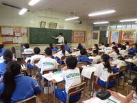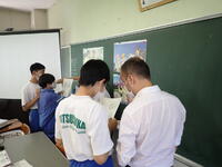 最初の授業は、副教材の配布や授業の約束事、進め方、評価の仕方、等の説明がありました。年度の初めなのでどの学年も初々しさが感じられました。