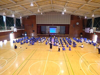 1時間目、3年生が片付けをしてくれました。今回もあっという間にもとの体育館に戻してくれました。あまりに早く終わったので、「友達と語らうのんびりタイム」も設けられました。