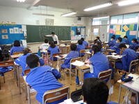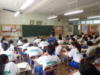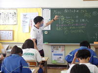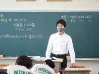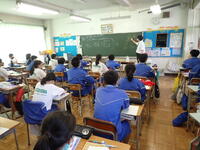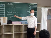 昼休み、ALTのフェルナンド先生(通称ナンド先生)が明日の英検対策のための学習会を開いてくれました。解き方のちょっとしたコツや、英作文でどんなときでも使える表現などを教えてくれました。