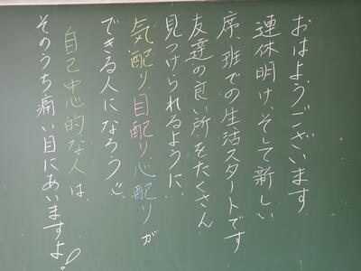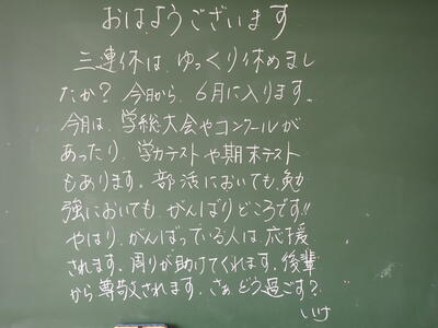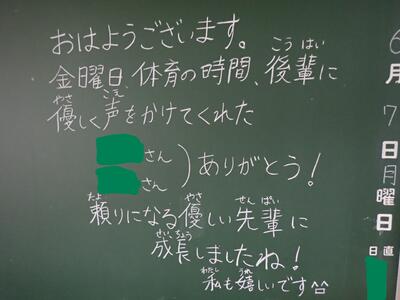 今日は1日雨です。生温い風が強かったので、登下校が大変でしたね。濡れて風邪を引かないよう気をつけてください。