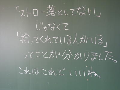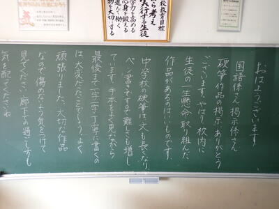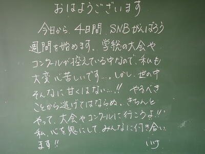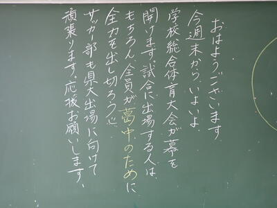 雨が降っていたので、女子ソフトテニス部と野球部が朝練習を屋根のある場所で行っていました。女子ソフトテニス部はインナーマッスル強化、野球部はバドミントンの羽根を使ったバッティング練習をしていました。どの生徒も地味な練習でも決して手を抜くことがなく、また礼儀が素晴らしいことに改めて感心しました。