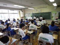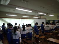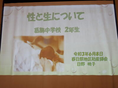 2年生は、5,6時間目にかけて保健学習「生と性」について学びました。外部から助産師の日野先生をお呼びして、実物大の赤ちゃん人形や妊娠検査薬、実際にあった衝撃的な事実や感動の話などを通して、いかに生き抜くことが大切かを熱く語っていただきました。蒸し暑い体育館の中でもだれることなく、生徒たちは食い入るように話を聞いていました。