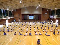 GIGAスクール構想に基づく「生徒一人一台端末(タブレット)」の整備が完了したので、3年生は、5時間目に集会形式で研修会が行われました。一人一人に割り振られたIDとパスワードを入力して、授業で使用できる準備をしました。早く活用できるといいですね。