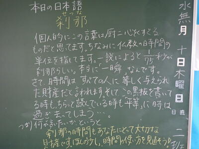 本日の日本語は「刹那」です。1/75秒と言うことは「0.01秒」です。まさに一瞬。時間を大切にそして有効に使いたいものですね。