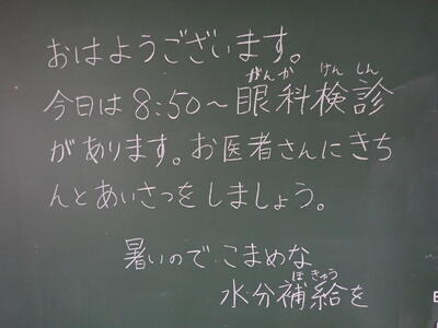 昼に、特支、1年の内科検診(結核検診含む)がありました。学校医の2名の先生に来ていただきました。