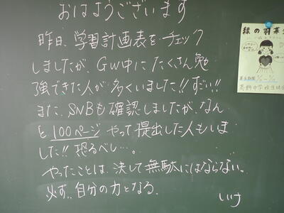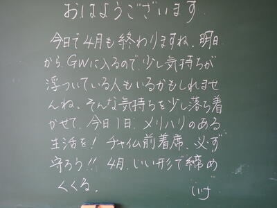 今日の「担任からのメッセージ」です。
