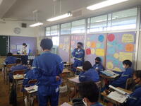 2年生の学活では、クラス目標を決めていました。生徒が中心となって生徒のための目標になるよう話し合っていました。