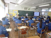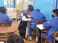 5校時は、避難訓練でした。どの生徒も素早い行動をし、避難指示が出て集合完了(点呼確認含む)まで4分30秒という記録的な早さ(5分が理想時間)を達成しました。担当の先生は、10年前の東日本大震災を地元宮城で経験した先生です。当時の震度は「6強」で津波の恐怖を身をもって感じたそうです。その先生の話の中で「緊急時は1分1秒が本当に大切なんだ」と生徒に語りました。