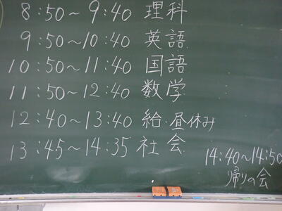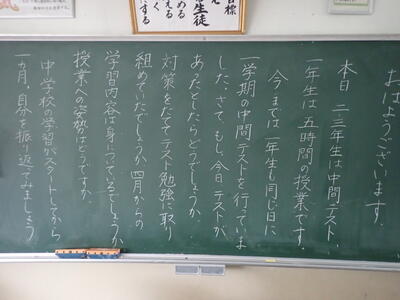 今日は、2年生と3年生が令和3年度最初の定期テスト・中間テスト(5教科)でした。実力を発揮することができましたか。