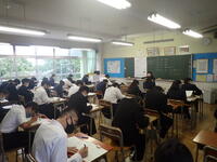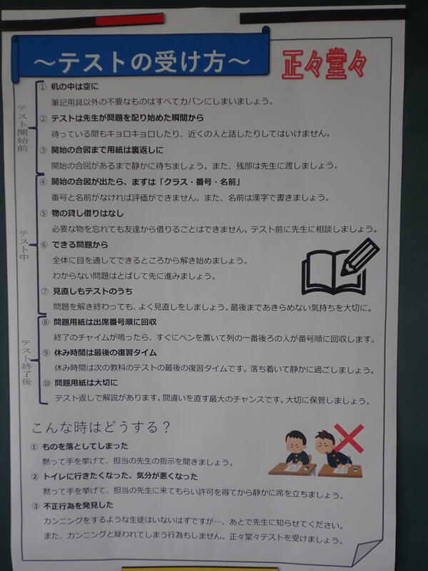 明日は2,3年生の中間テストです。2年生はテスト対策勉強会を開いていました。よい点数がとれるといいですね。