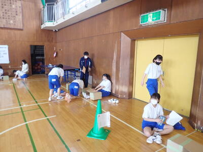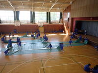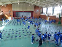 1時間目、3年生が片付けをしてくれました。今回もあっという間にもとの体育館に戻してくれました。あまりに早く終わったので、「友達と語らうのんびりタイム」も設けられました。