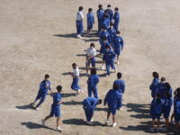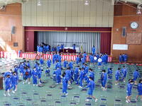 始業式開始10分前には整列完了です。おしゃべりしている生徒は誰一人いません。伝統が完璧に引き継がれています。