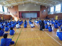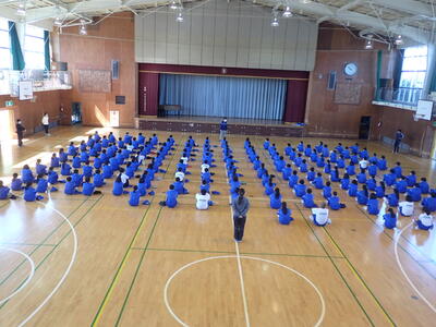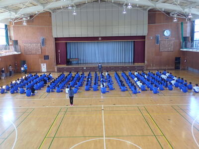 2時間目:2年生集会、3時間目:1年生集会。先生方の自己紹介をしていました。ある学年では、「誰が一番優しい先生か?」という議論があったり、自己紹介後、自然と生徒から拍手があったり、と和気あいあいの集会となりました。