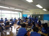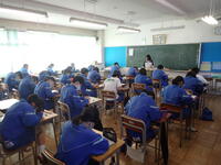 最初の授業は、副教材の配布や授業の約束事、進め方、評価の仕方、等の説明がありました。年度の初めなのでどの学年も初々しさが感じられました。