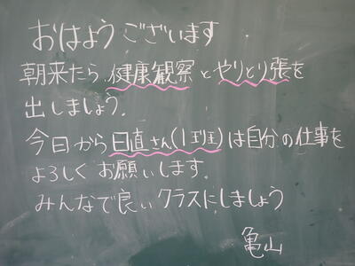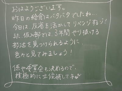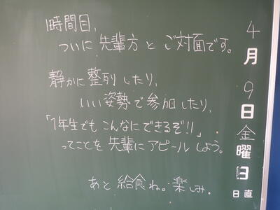 1学期始まって3日目。まだまだ慣れないとは思いますが、少しずつ覚えていきましょう。