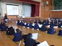 スタートライン集会が、1校時1年生、2校時2年生、3校時3年生で開かれました。この中で葛飾中学校での生活(授業、家庭学習、給食、清掃、保健室利用、さわやか相談室利用、自転車の乗り方、等)についての確認をしました。