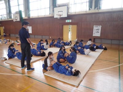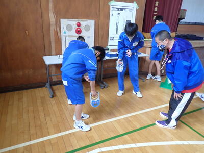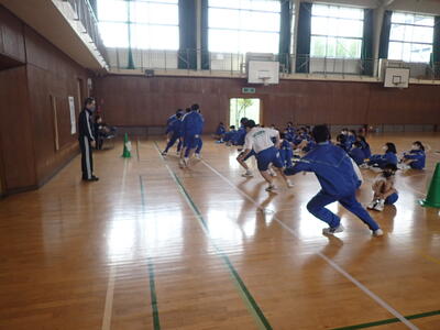 今日は体力テストの日ですが、残念ながら小雨が降ったので、できる種目を体育館でやることになりました。1,2校時が2年生、3,4校時が3年生、5,6校時が1年生で実施しました。