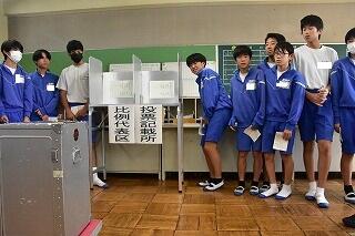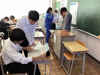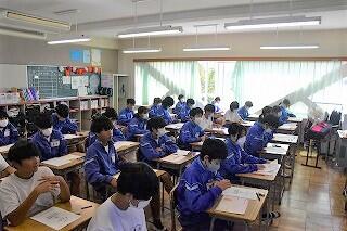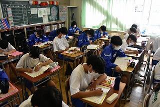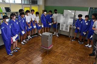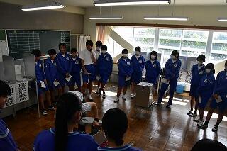 3年生の社会(公民)の授業では、先日の選挙の模擬投票の授業に続いて、裁判員制度について学び、実際にその様子を体験する授業が行われていました。